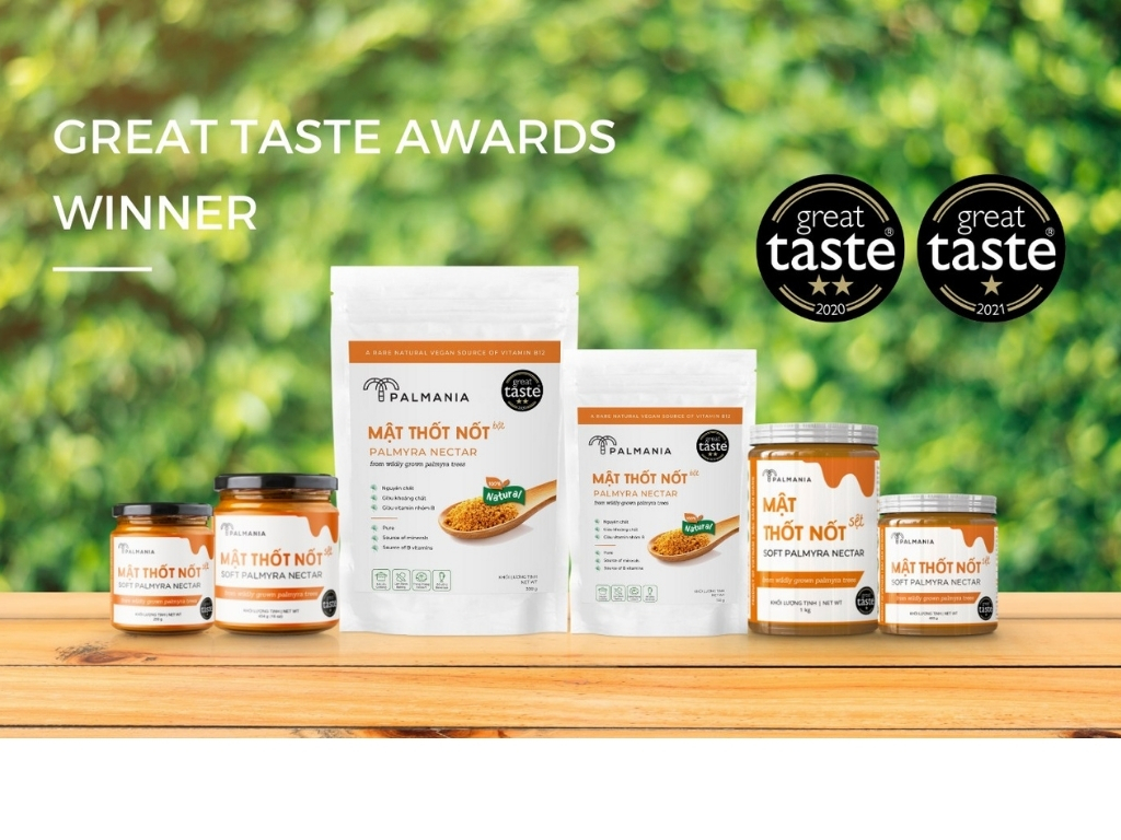 Palmania proudly presents the Palmyra Nectar 150g – Specialty of An Giang, a natural sweetener honored with the Great Taste Awards 2020 (2 Stars) in the United Kingdom — a testament to its exceptional quality and sustainable natural origin.