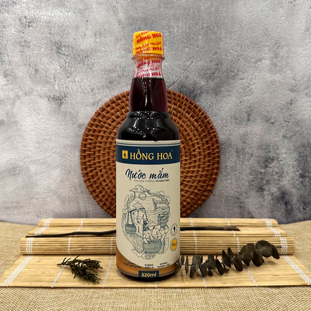Nước Mắm Nhĩ Cá Cơm Truyền Thống Phú Quốc Hồng Hoa 35 Độ Đạm - Chai Nhựa 520ml
