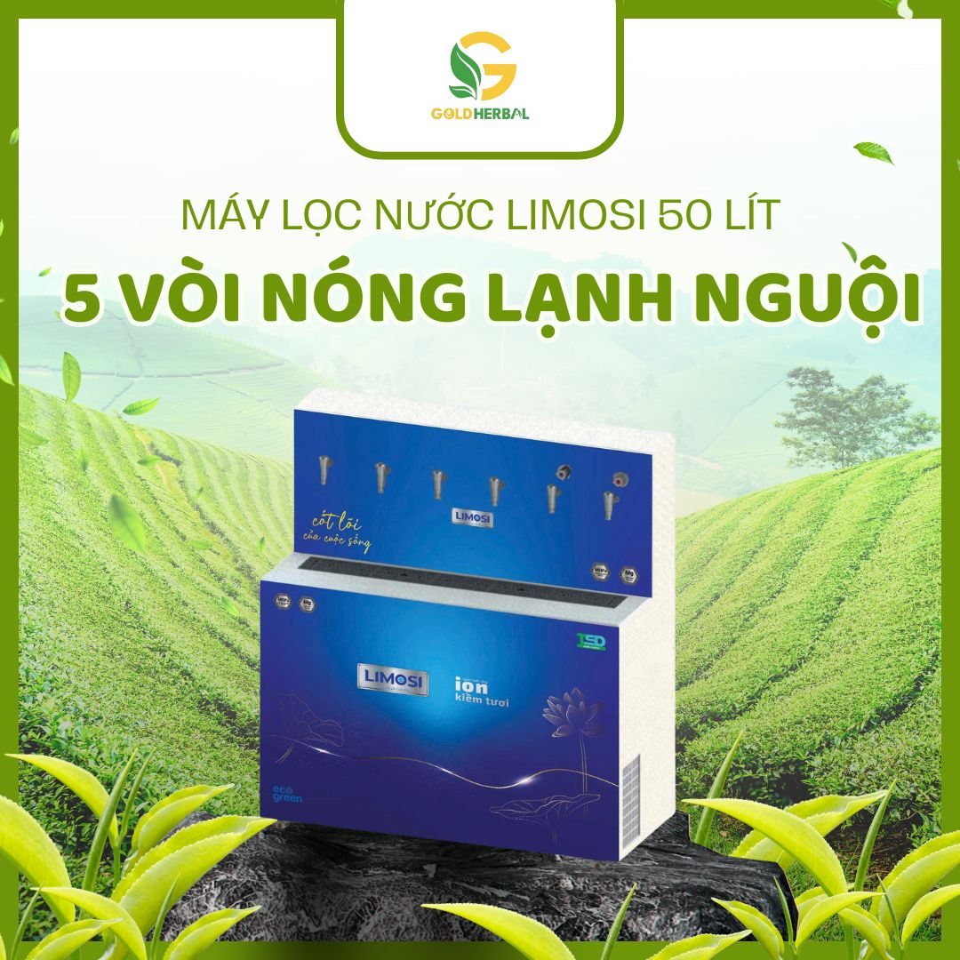- Tên sản phẩm: Máy lọc nước ion kiềm Limosi 50L – 5 vòi nóng lạnh nguội