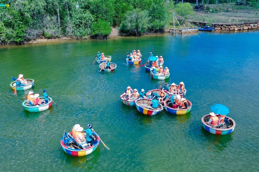 📍 12:00 – 15:00 | Trải nghiệm Sông Cửa Cạn bằng Thuyền Thúng